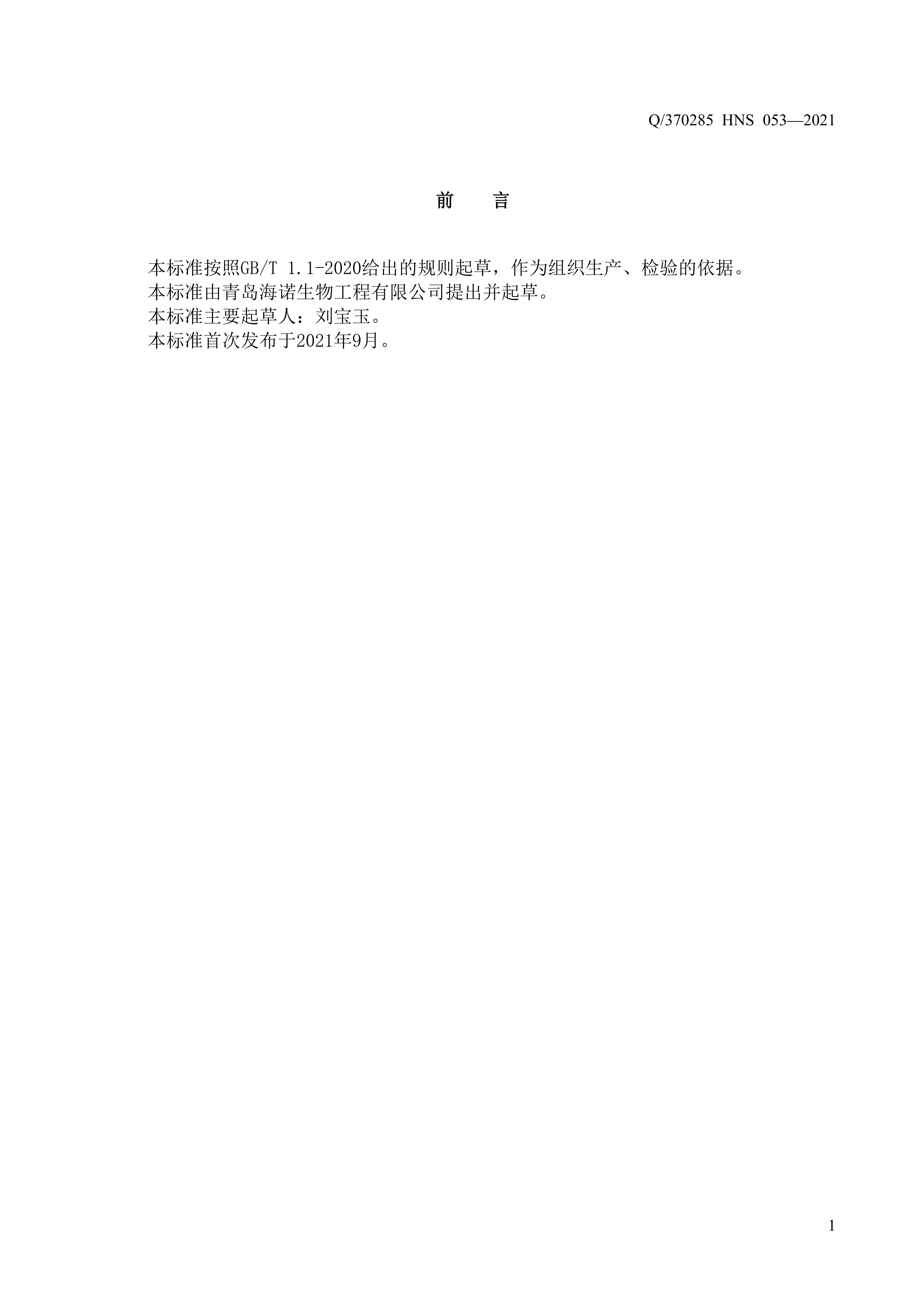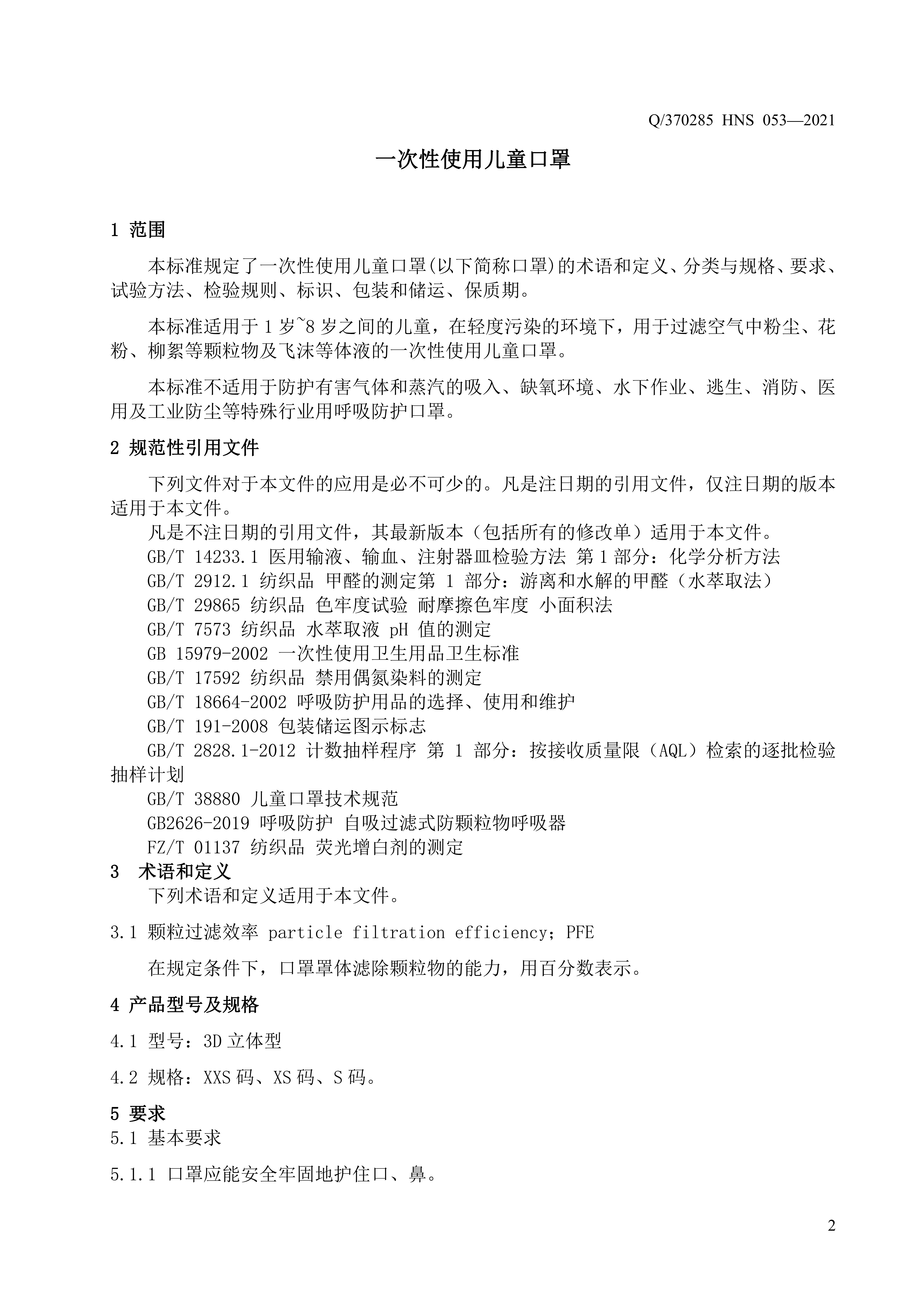 青島海諾生物工程有限公司企業標準 — 一次性使用兒童口罩