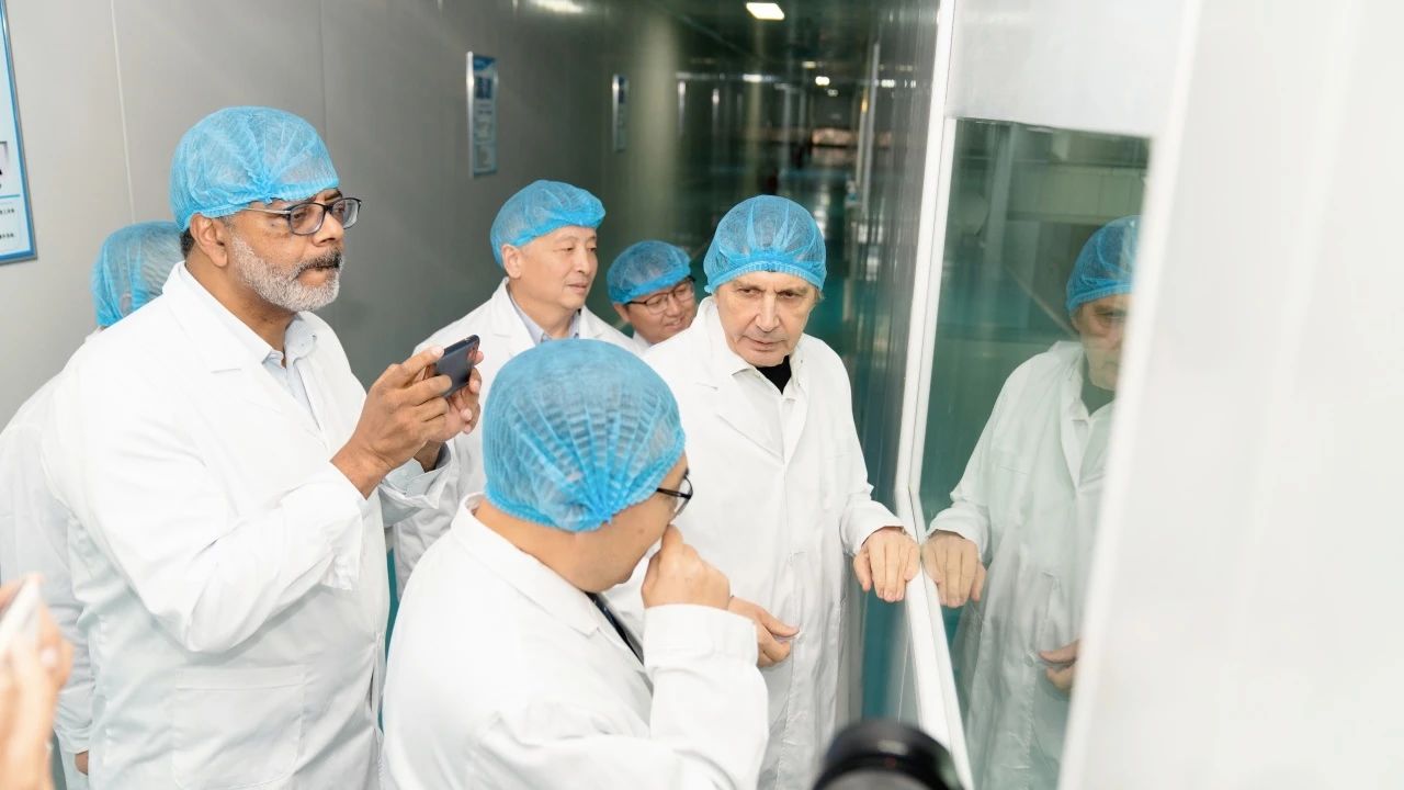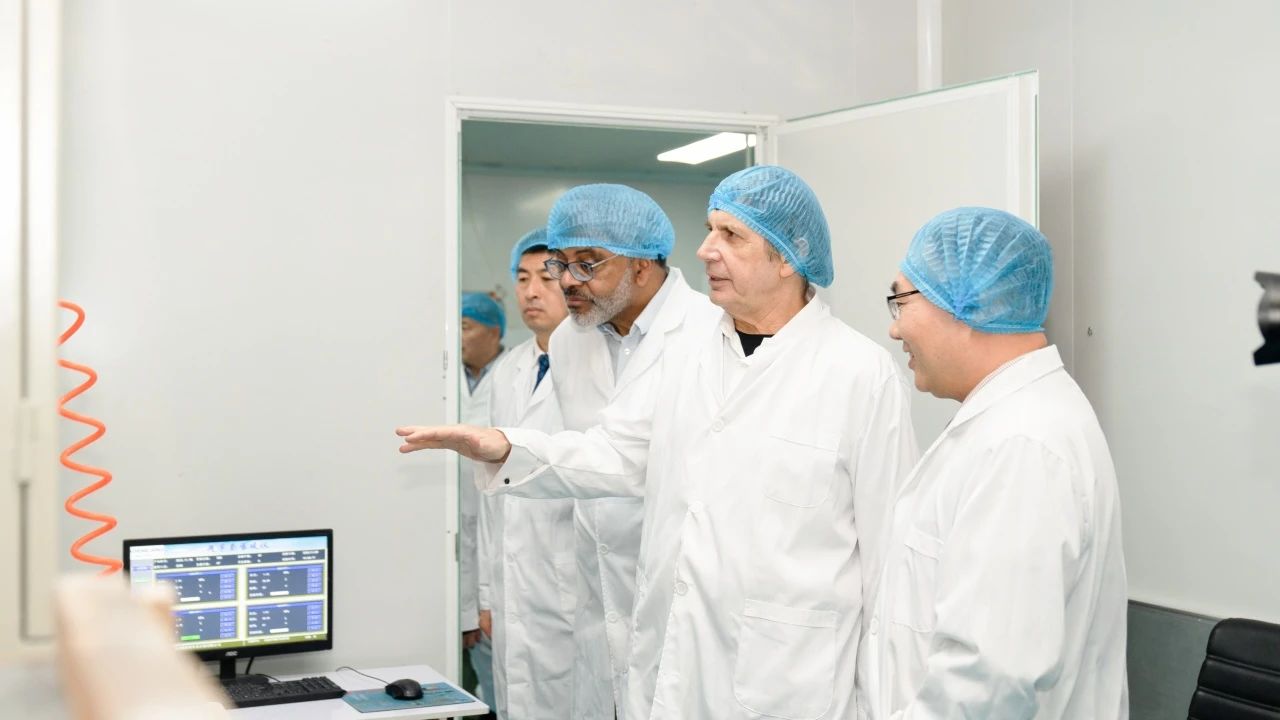 在乳膠產(chǎn)品生產(chǎn)車間,安德烈·蓋姆教授就石墨烯材料在安全套生產(chǎn)領(lǐng)域的應(yīng)用給予了寶貴的指導(dǎo)意見。